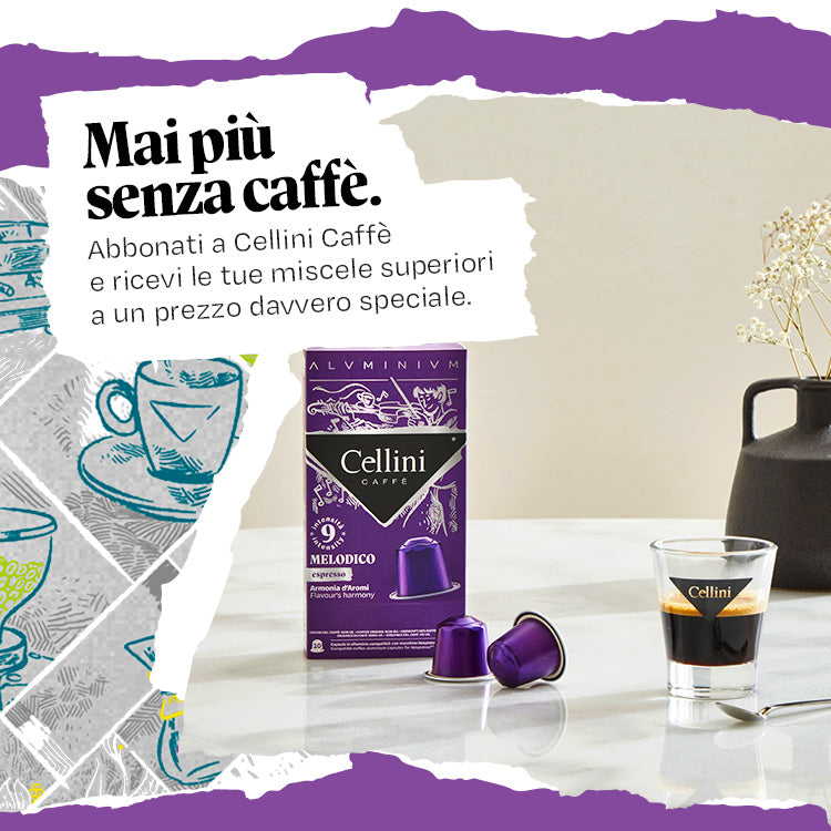 Con l’abbonamento Cellini Caffè non dovrai più preoccuparti di riordinare le tue miscele preferite e in più potrai approfittare di offerte e iniziative speciali a te dedicate.