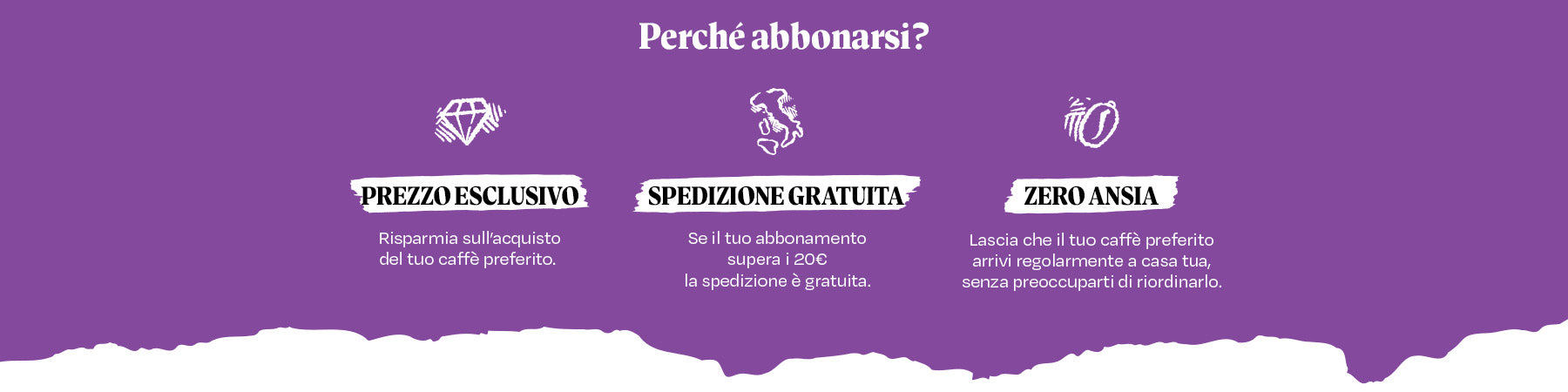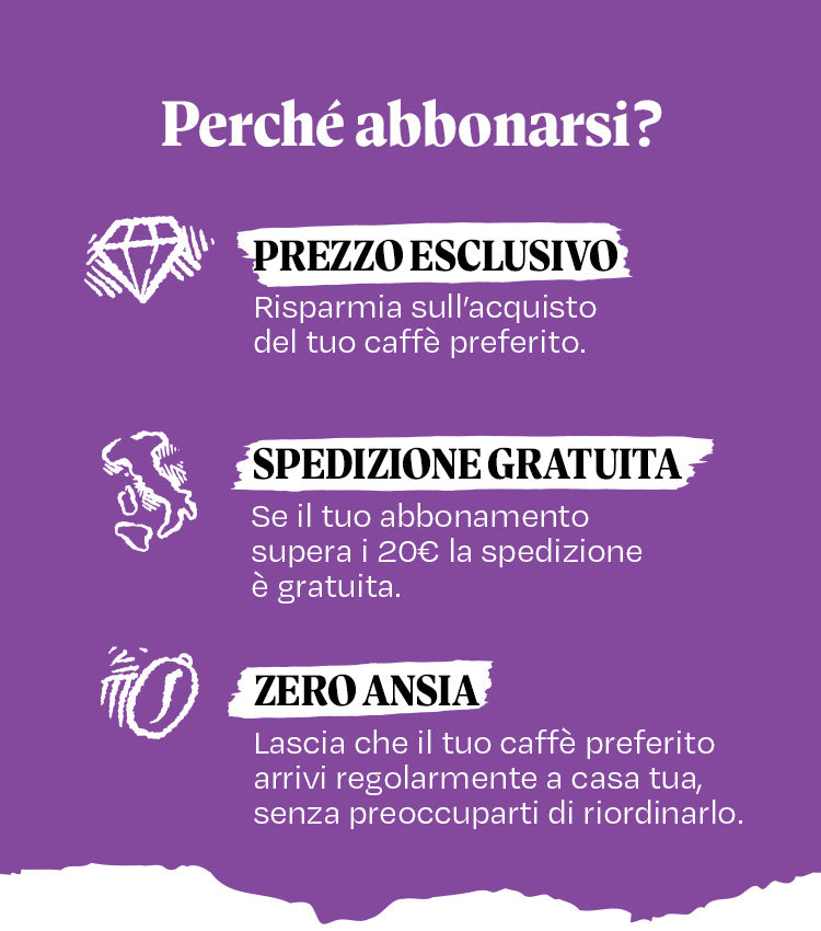 Per attivare il servizio in abbonamento procedi selezionando la miscela e il piano di abbonamento che fa per te direttamente dalla scheda prodotto e clicca poi su Abbonati e Risparmia.